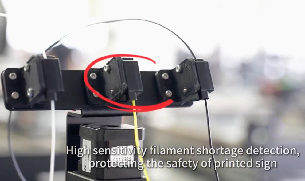 Cảm biến thiếu sợi nhựa được thiết kế để biết được sợi nhựa được sử dụng hết hay chưa, nếu không có sợi nhựa nào trong 3 ống gá, cảm biến sẽ báo động và in sẽ được dừng lại tự động, điều này giúp tiết kiệm năng lượng và tránh bị kẹt đầu phun