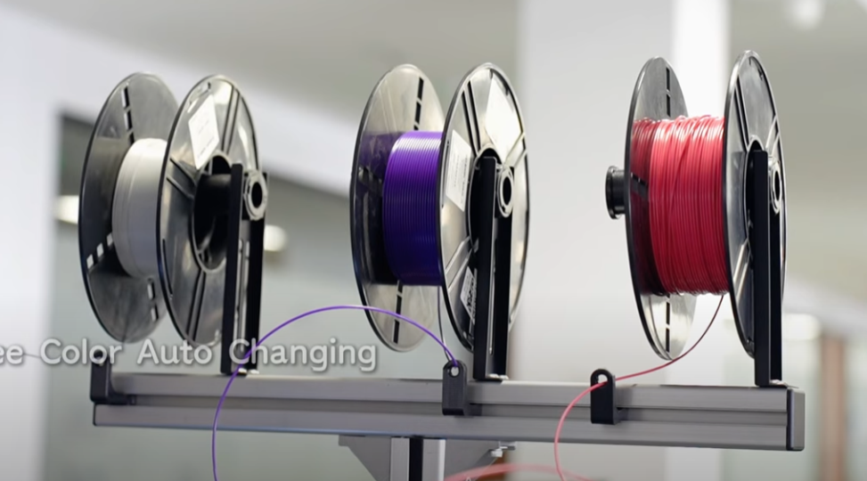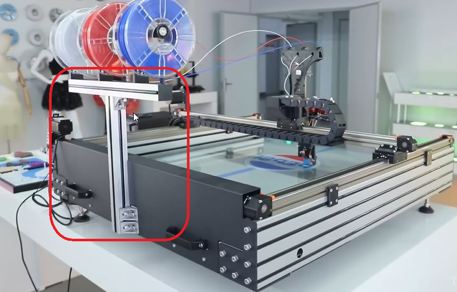 Giá để sợi nhựa là nơi lắp đặt ống gá cuộn nhựa (spool holder) và cảm biến thiếu sợi nhựa. Nó được làm bằng kim loại, giá cao, khỏe và ổn định để sử dụng lâu dài. Với máy in chữ nổi 3D dòng series AS như AS80 và AS120 được trang bị 3 ống gá cuộn nhựa và 3 cảm biến thiếu sợi nhựa được lắp đặt trên giá để sợi nhựa. Như vậy là máy được trang bị nhiều hơn so với các máy máy in chữ nổi 3D trên thị trường thường chỉ có hai giá đỡ cuộn nhựa và hai cảm biến thiếu sợi nhựa