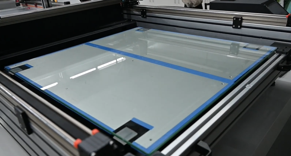 Bàn in là nơi thực hiện việc in ấn, là nơi xuất hiện sản phẩm in. Nó gồm hai thành phần, tấm gia nhiệt (heating plate) và tấm kính nền (glass platform), tấm gia nhiệt ở bên dưới tấm kính là để hỗ trợ và làm nóng tấm kính. Tấm kính là nơi để đổ keo và in chữ nổi 3D.