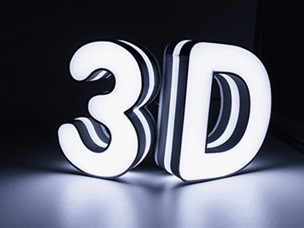 In 3D có thể tạo ra các phần của bộ chữ như mặt trước, mặt sau, mặt bên, toàn bộ chữ không bao gồm phần chiếu sáng. In 3D khắc phục được những khó khăn trong việc tạo hình và thiết kế nhiều màu sắc, do đó các nhà thiết kế rất thích công nghệ in 3D.