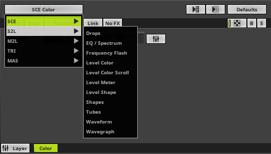 Chọn từ 5 loại hiệu ứng khác nhau và hơn 55 hiệu ứng tích hợp. SCE Effects không yêu cầu bất kỳ âm thanh nào và tạo nên bộ mẫu và hiệu ứng đa dạng nhất. S2L, viết tắt của Sound2Light, giúp đầu vào âm thanh của bạn trở nên sống độn. M2L, viết tắt của Music2Light, đưa các hiệu ứng dựa trên âm thanh lên một tầm cao hơn nữa. MAS cho phép bạn tạo hiệu ứng từ đầu với sự trợ giúp của ngôn ngữ lập trình Madrix. TRI, viết tắt của Trigger, bổ sung một cấp độ tương tác hoàn toàn mới khi bạn có thể set off visual bằng tay.